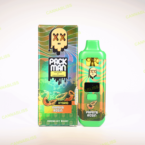 The Packman Cannabis Disposable Vape Pen is a top-tier, all-in-one vaping device designed for cannabis users who want potent effects combined with simplicity and portability. Each pen comes pre-filled with a high-quality cannabis concentrate, expertly crafted from a blend of live resin and liquid diamonds. This combination ensures an exceptionally flavorful, smooth, and potent vaping experience that captures the full essence of the cannabis plant.